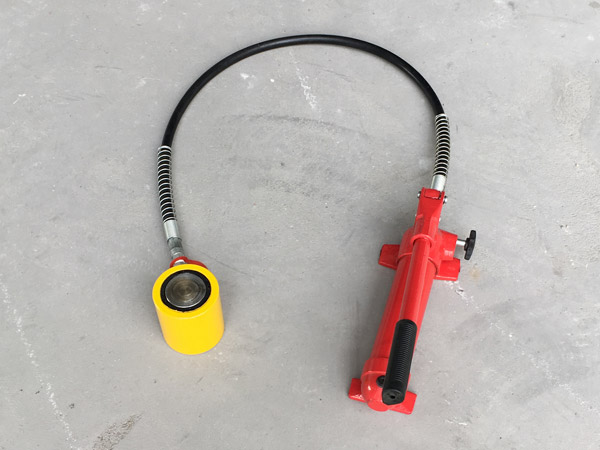 5、使用時先將手動泵的快速接頭與頂對接,然后選好位置,將油泵上的放油螺釘旋緊,即可工作。將放油螺釘旋松,油缸卸荷。